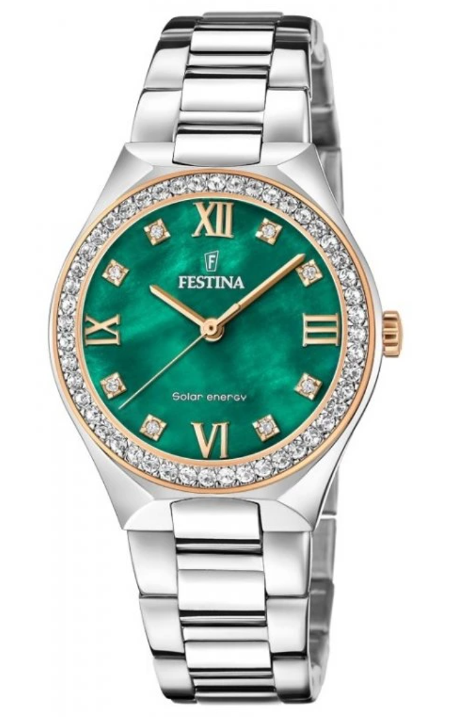 👇 Náš tip: Hodinky Festina 20658/3 - Model Festina 20658/3 je skvelou voľbou pre dámy, ktoré hľadajú spojenie klasiky a elegancie. Ponúka výrazný perleťový číselník zelenej farby a žiarivú lunetu, ktorú zdobia zirkóny.