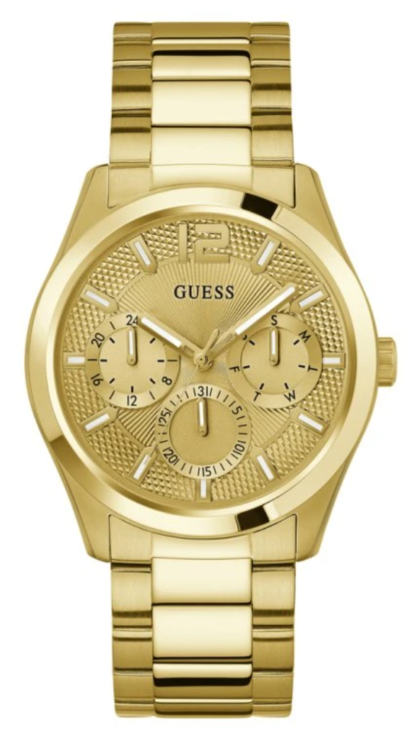 👇 Náš tip: Hodinky GUESS GW0707G3 - Pánske hodinky GUESS GW0707G3 predstavujú výrazný módny doplnok, ktorý stelesňuje luxus a sebavedomie. Hodinky sú kompletne ladené do zlatej farby (puzdro, ciferník aj náramok), čo pôsobí veľmi luxusným a odvážnym dojmom.