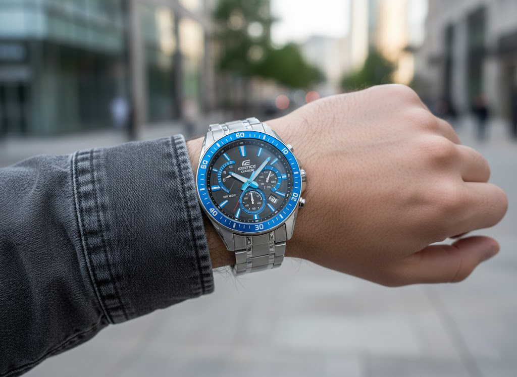 Tento model z populárnej línie Edifice je dôkazom, že aj športovo ladené hodinky môžu pôsobiť sofistikovane. Ciferník s priemerom 47 mm okamžite pritiahne pozornosť, no pritom si zachováva vyvážený dizajn.
