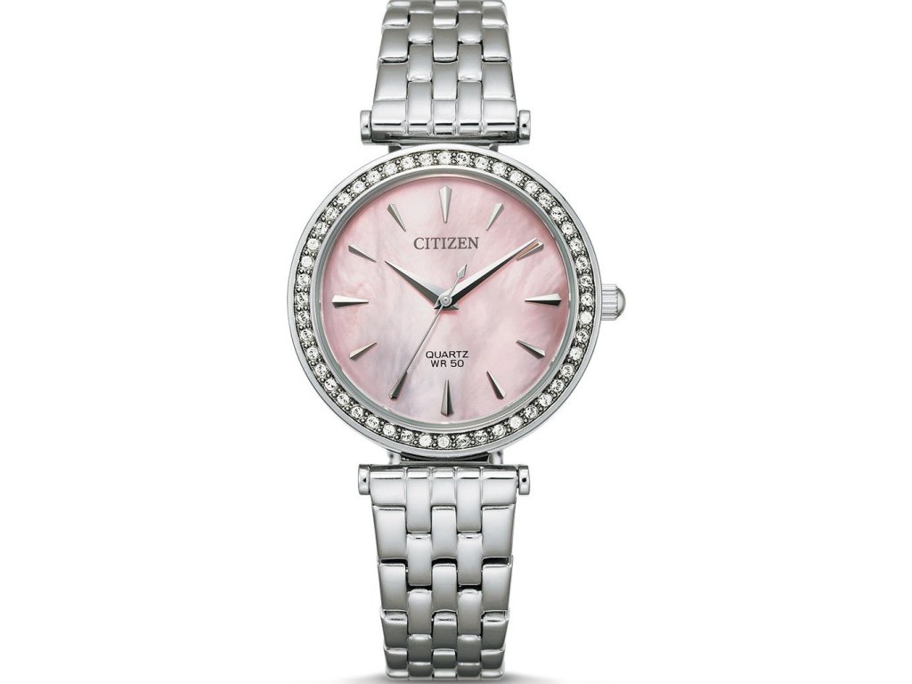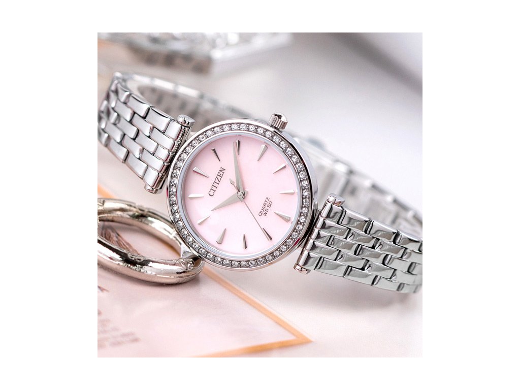 Dámske hodinky Citizen ER0210-55Y v kovovom prevedení remienka. Klasický štýl, elegantný dizajn. Jemné farby sú dokonalé pre dámske hodinky, ružový perleťový dizajn displeja je krásnym zvýraznením. Bez zbytočných funkcií, minimalistický displej ukazuje spoľahlivý čas, známu značku Citizen a ukazuje že máte štýl. Nechajte sa oslniť týmito celokovovými hodinkami v striebornej farbe.
