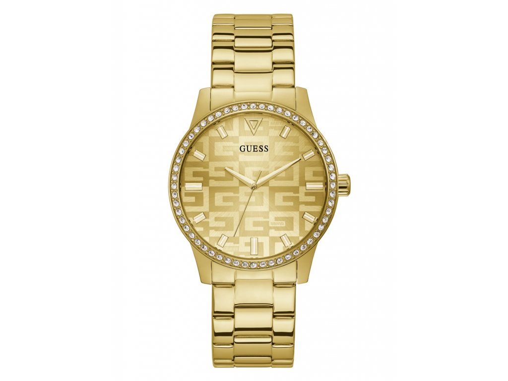 Dámske hodinky Guess GW0292L2 v zlatej farbe remienka a obruby.