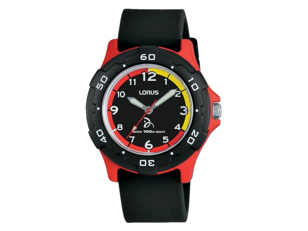 Detské hodinky Lorus RRX11GX9 s prehľadným displejom s arabskými číslicami a ručičkovým ukazovateľom času. Plastový, kaučukový remienok. Krásna kombinácia čiernej, červenej a žltej farby. Tieto detské hodinky sú vhodné ako pre chlapcov, tak aj pre dievčatá.