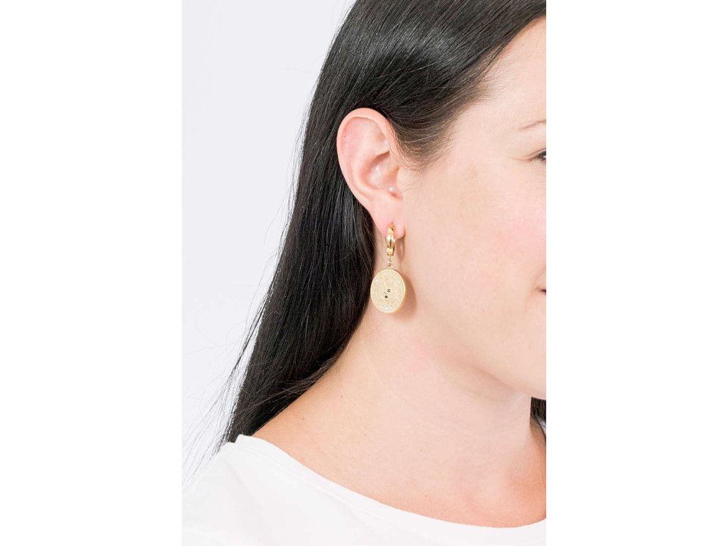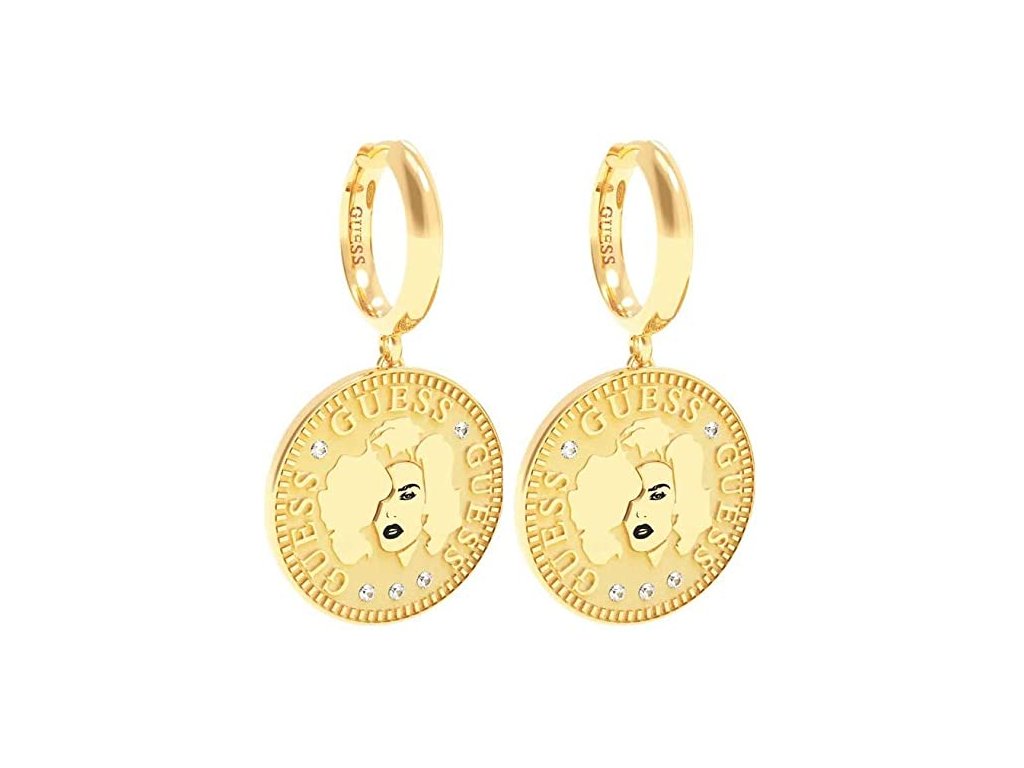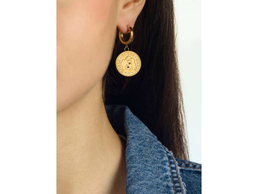 Dámske náušnice Guess UBE79156 z chirurgickej ocele vás oslovia svojím unikátnym dizajnovým prevedením. Náušnice lesklej zlatej farby obohacuje názov značky, minimalistická dáma a ozdobné kamienky Swarovski. Na zadnej strane náušníc tiež nájdete rok a mesto vzniku značky Guess, ako aj jedinečný dizajn písmen G.