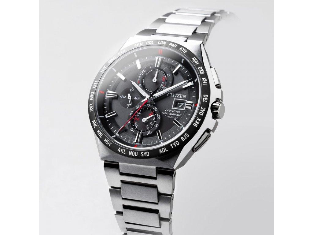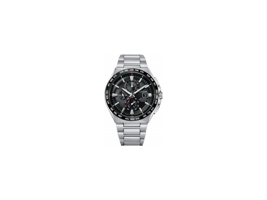 Rádiom riadené pánske hodinky Citizen AT8234-85E vás oslovia svojím športovo-elegantným vzhľadom a praktickými funkciami. Tieto kvalitné náramkové hodinky sa pýšia svojím strieborným vyhotovením zo Super Titanium, ktoré spolu so zafírovým sklíčkom chránia hodinky pred poškodením. Displej spolu s lunetou v čiernom prevedení sa vyznačujú precíznym spracovaním do posledného detailu. Analogový ciferník je doplnený o štýlové chronografy a množstvo indexov. Ručičky na ciferníku spolu s indexami sú luminiscenčné. Hodinky disponujú funkciami ako dátum, deň v týždni, stopky, svetové časy, odolnosť proti magnetismu a kontrola stavu batérie. Článkový kovový remienok má preklápací typ zapínania. Hodinky sú na dotyk hladké a zaisťujú pohodlné nosenie po celý deň.