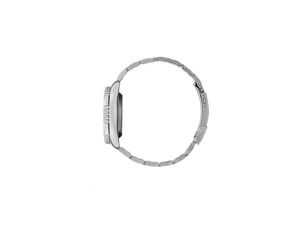 Puzdro hodiniek je vyrobené z kvalitnej nerezovej ocele, ktorá poskytuje vysokú odolnosť voči korózii. S priemerom 42 mm sú hodinky dostatočne robustné, aby zvládli náročné podmienky potápania. Čierna luneta s bielejšími indexami a ciframi je otáčateľná, čo umožňuje jednoduché meranie času.