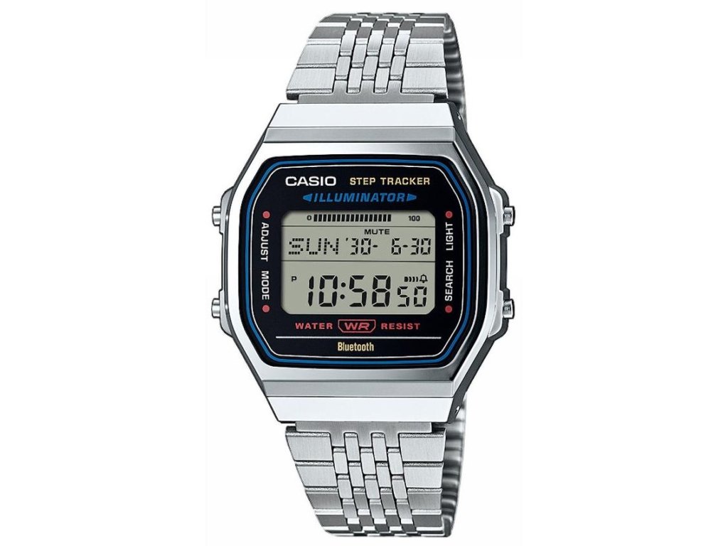 | Funkcie: | Dátum Stopky Pamäť na medzičasy na 200 kôl Odpočítavacie stopky LED osvetlenie displeja 5 budíkov Druhý čas BLUETOOTH Krokomer |